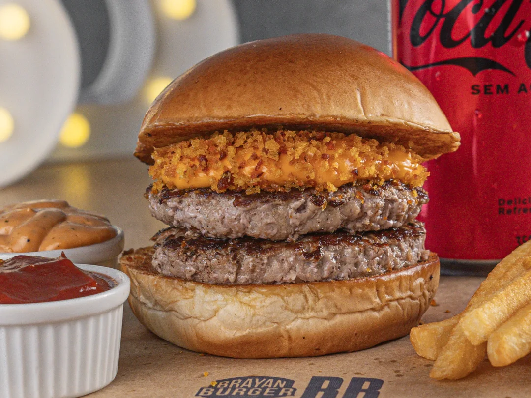 Queijo cheddar, 5 maravilhosas fatias de bacon e molho. Escolha entre 1 ou 2 Carnes artesanais de 100g cada.