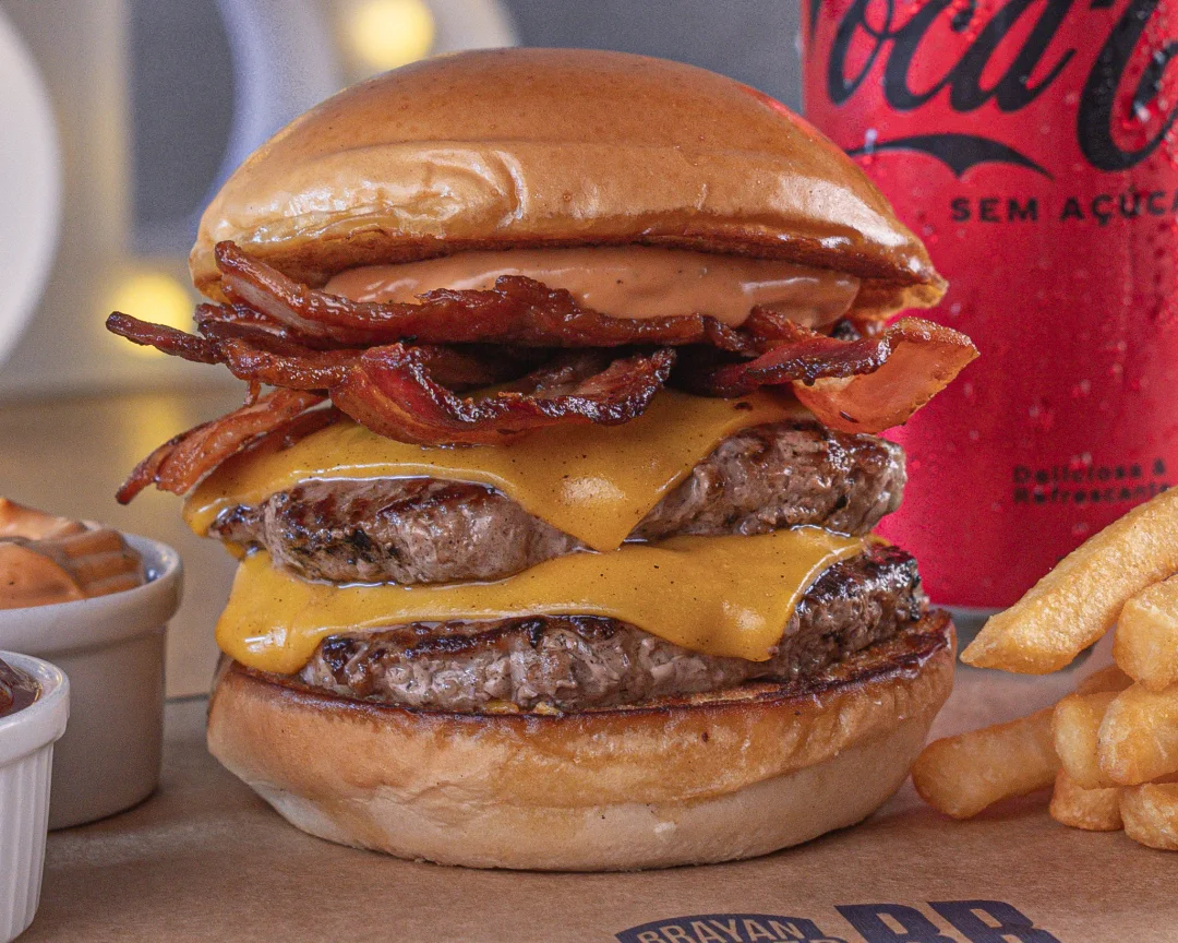 Queijo cheddar, 5 maravilhosas fatias de bacon e molho. Escolha entre 1 ou 2 Carnes artesanais de 100g cada.